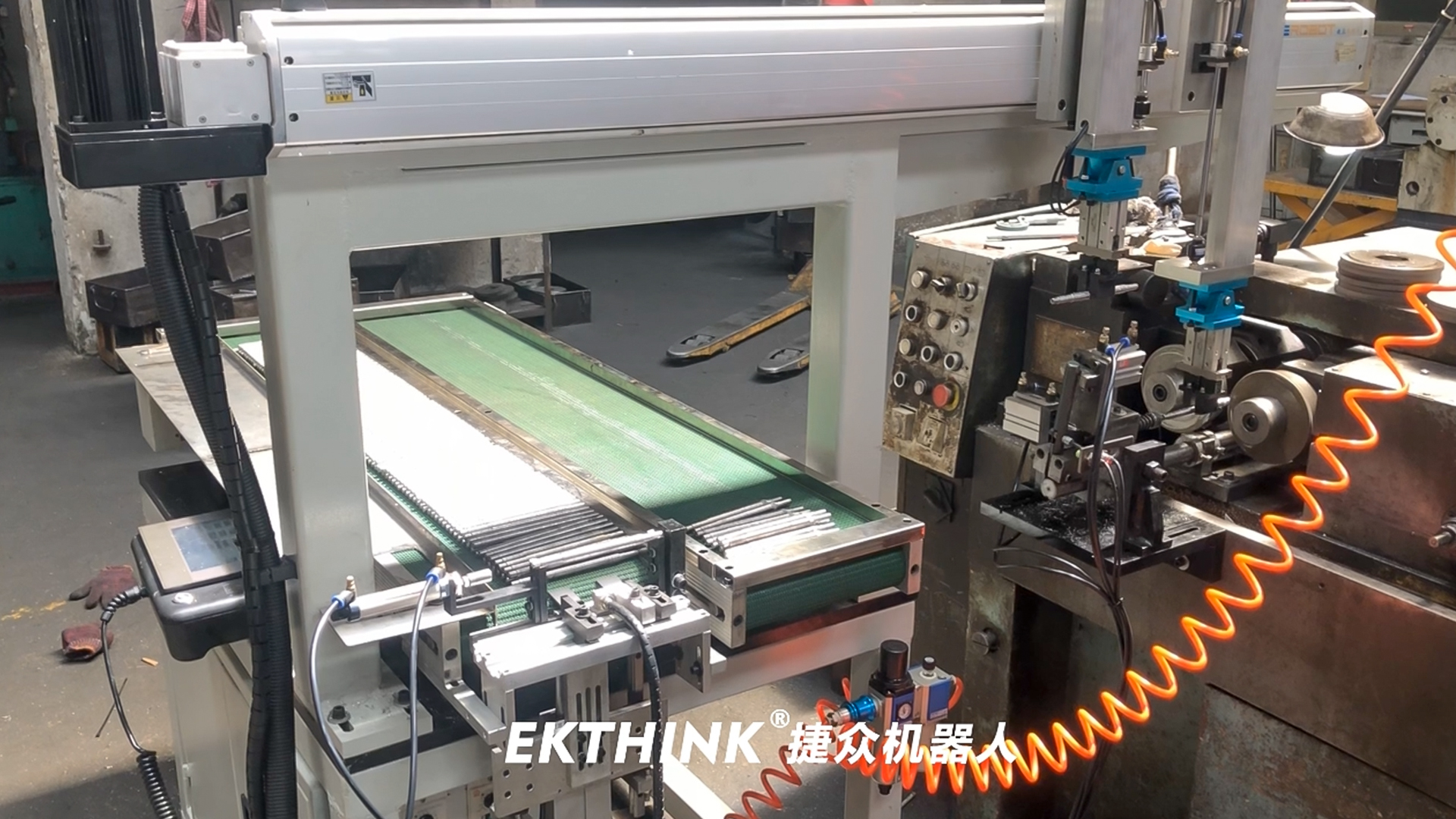 全自動滾絲機視頻機械手自動送料放料案例